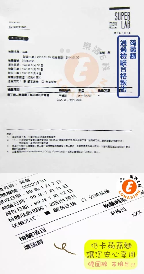 樂活e棧 低卡蒟蒻麵 板條寬麵+5醬-安心檢驗證明: